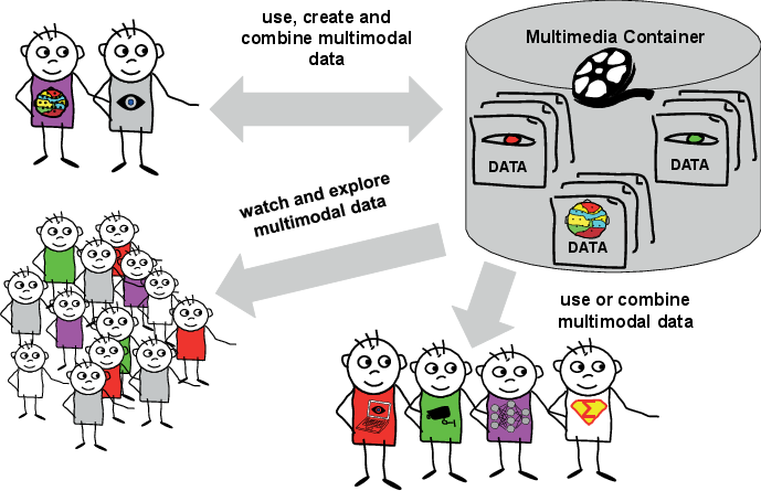 To analyze and explore multimodal data (images, videos, and recordings such as gaze trajectories, EEG, emotional states, and heart rate) customized applications have to be utilized. But how to make data accessible to a broad audience, like researchers from diverse disciplines? A possible solution is to use multimedia containers which support the visualization and sonification of the scientific data thus allowing explorative multimodal data analyses with any multimedia player. To test this approach it had been prototyped on several datasets and then evaluated in a user study. Read on to learn more about the benefits and the requirements and how artificial networks can be trained on such standardized containers.